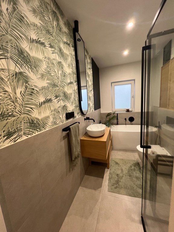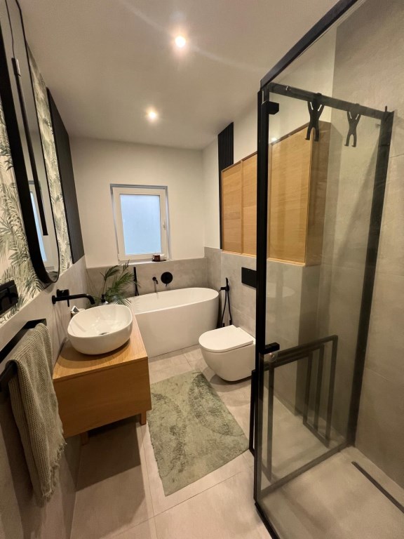 Wnętrze nieruchomości zostało zaprojektowane z myślą o komforcie i funkcjonalności. Przemyślany układ pomieszczeń zapewnia wygodę codziennego użytkowania, a duże przeszklenia gwarantują doskonałe doświetlenie przestrzeni. Dodatkowym atutem jest przestronny taras, który stanowi idealne miejsce do wypoczynku, spotkań z rodziną i przyjaciółmi czy spędzania czasu na świeżym powietrzu.