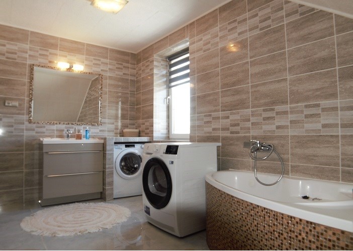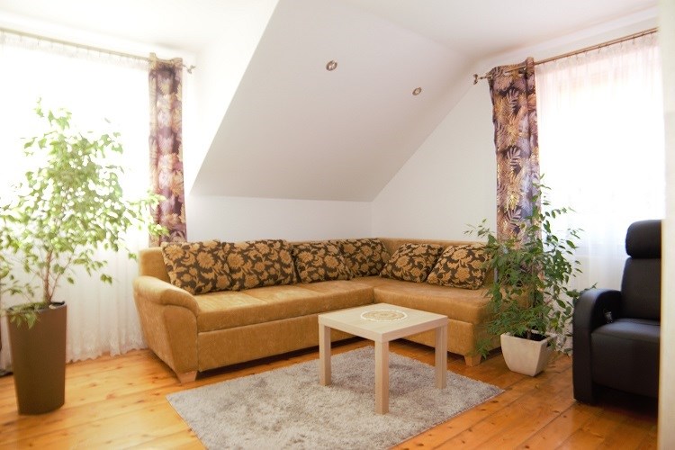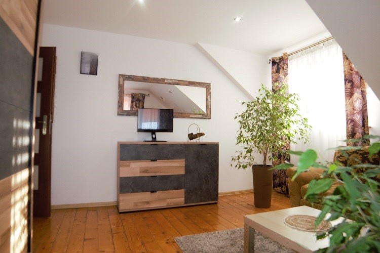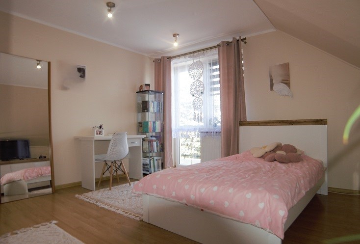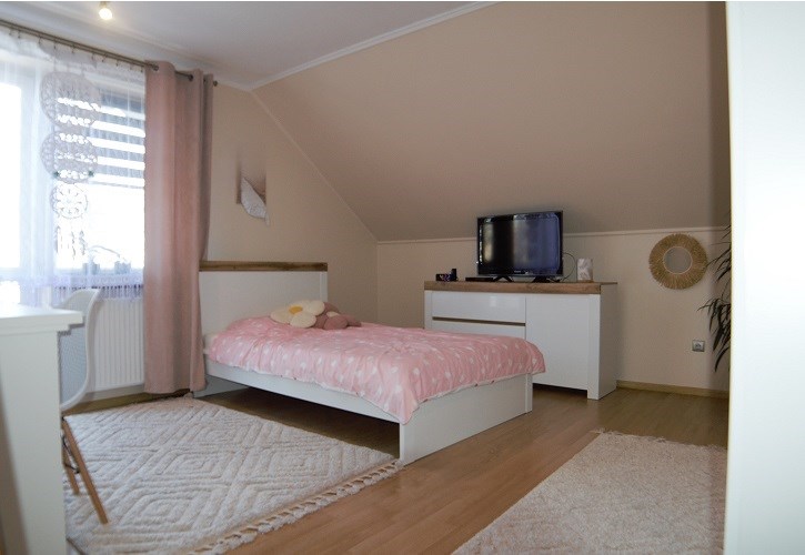Na poddaszu mieszkalnym są 3 pokoje, przedpokój oraz duża łazienka razem z WC z oknem (wanna).