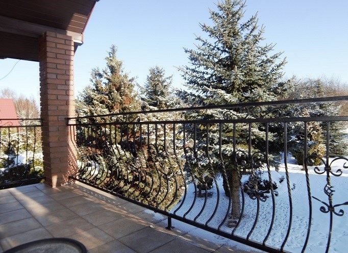 8. ZAGOSPODAROWANIE DZIAŁKI:liczne nasadzenia drzew i krzewów ozdobnych, PODJAZD: wyłożony kostką, OGRODZENIE:metalowe, siatka