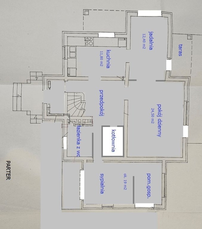 * PARTER: wiatrołap, hall, kuchnia (nowa zabudowa+pełen sprzęt AGD), jadalnia, pokój dzienny, sypialnia (z opcją garderoby), łazienka z WC, taras.