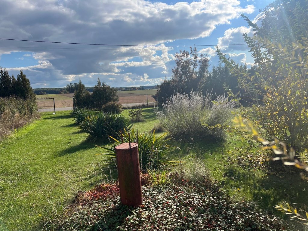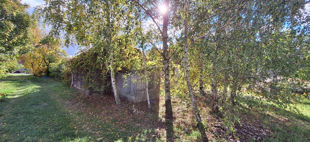 ►Teren działki od frontu z nielicznymi nasadzeniami (tuje, brzózki, samosiejki) zaś tył działki aktualnie dzierżawiony pod bieżącą uprawę.
