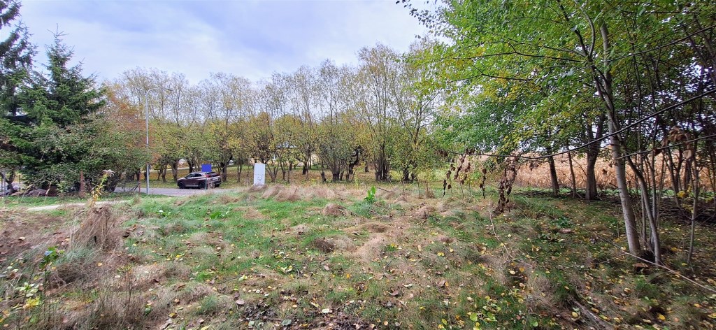 - Teren lekko zadrzewiony, szerokość od frontu 24 m.