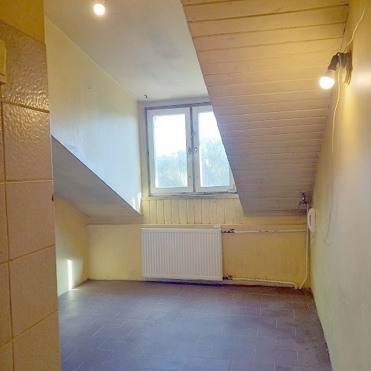 -Pierwsza część wykorzystywana jest jako kuchnia, posiada łazienką z WC, w drugiej części znajduje się pokój z dodatkową niewysoką antresolą.