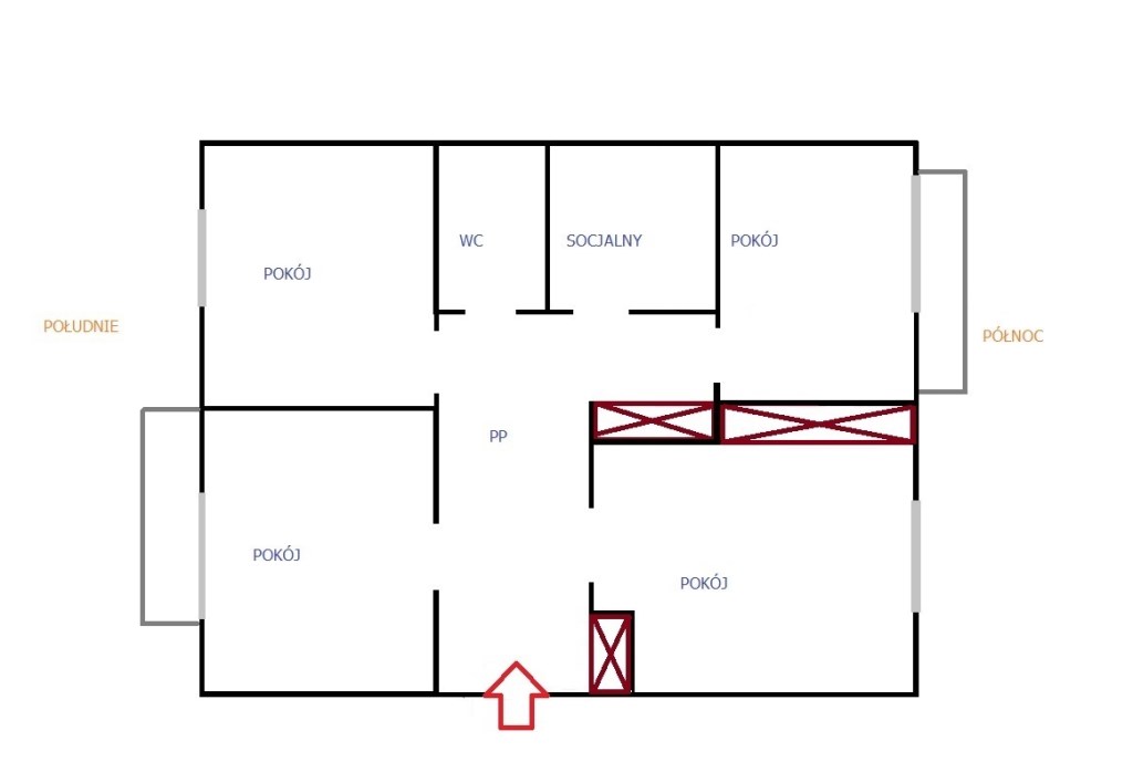 składa się z 4 pomieszczeń, każde z oddzielnym wejściem z korytarza, WC oraz pomieszczenia socjalnego.