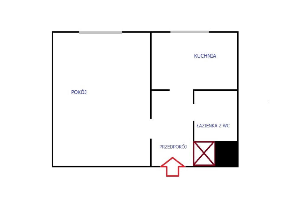 – PRZEDPOKÓJ:: ŚCIANY:tapeta, PODŁOGA: panele, INF. DODATKOWE:starsza szafa wnękowa