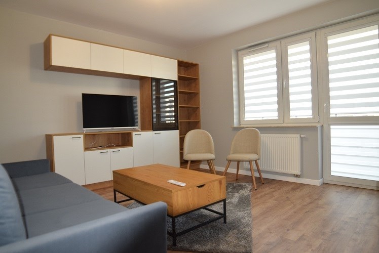 Proponujemy do wynajęcia rozkładowe mieszkanie w nowym budownictwie na ul. Kryształowej. Mieszkanie jest całkowicie wykończone i umeblowane. Posiada pokój dzienny z którego mamy wyjście na przestronny balkon, sypialnię, oddzielną kuchnię, łazienkę razem z WC i przedpokój. Dodatkowym atutem oferty jest możliwość wynajęcia garażu położonego pod budynkiem. Zapraszamy zainteresowane osoby do osobistego zapoznania się z ofertą.