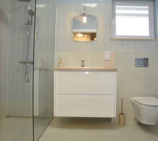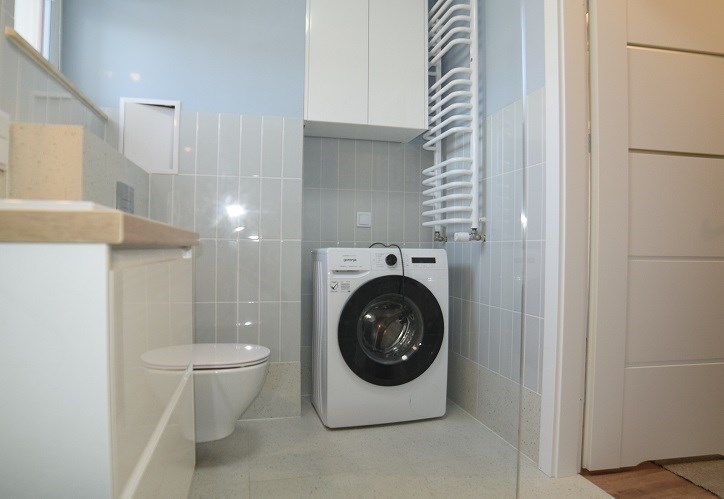 – ŁAZIENKA I WC:: RAZEM, ŚCIANY:glazura, PODŁOGA:terakota, INF. DODATKOWE:prysznic, pralka