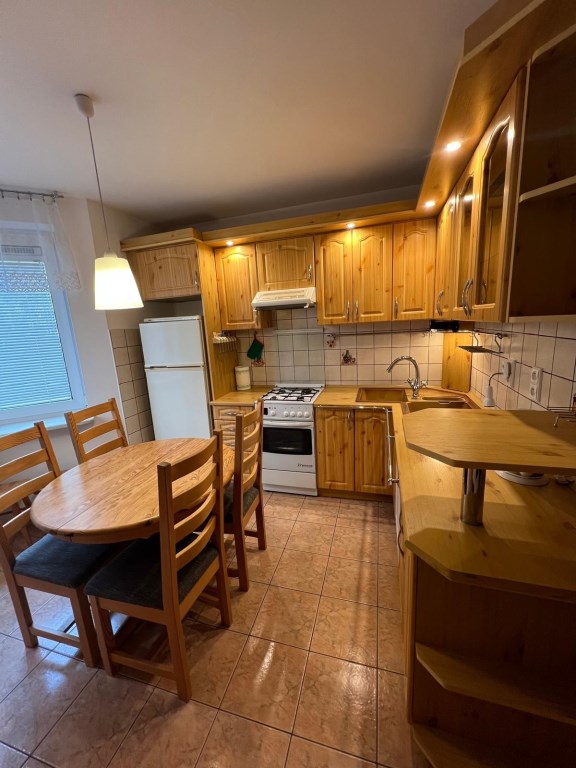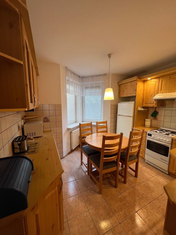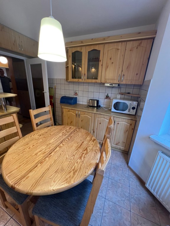 *Mieszkanie jest w pełni wyposażone we wszystkie niezbędne sprzęty typu zmywarka, lodówka, pralka, czajnik elektryczny, mikrofala, opiekacz, deska do prasowania, dużo szafek na niezbędne rzeczy, komplet wypoczynkowy.