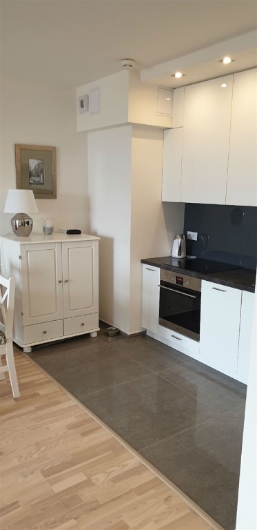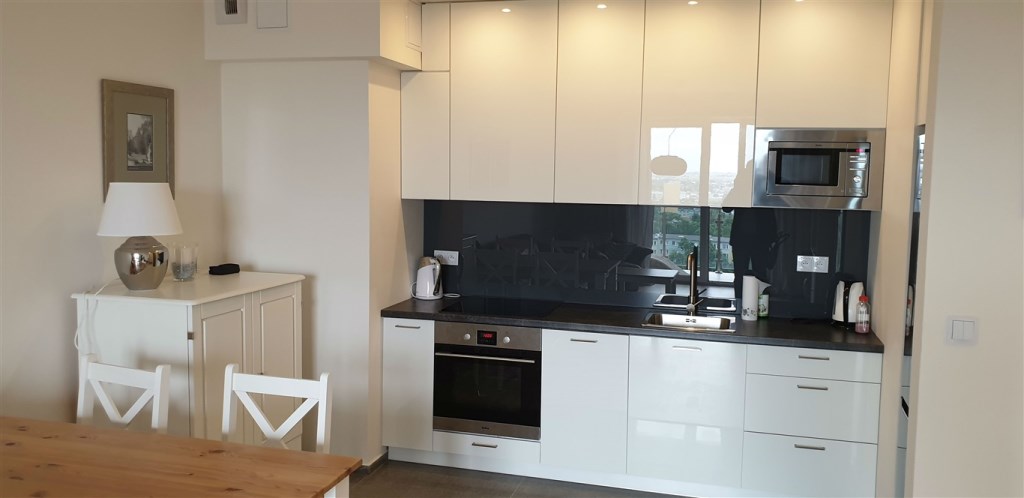 Pełne wykończenie mieszkania w najwyższym standardzie; zabudowa kuchenna (także zmywarka, płyta indukcyjna); w cenie mieszkania jest własne miejsce garażowe w podziemnym parkingu