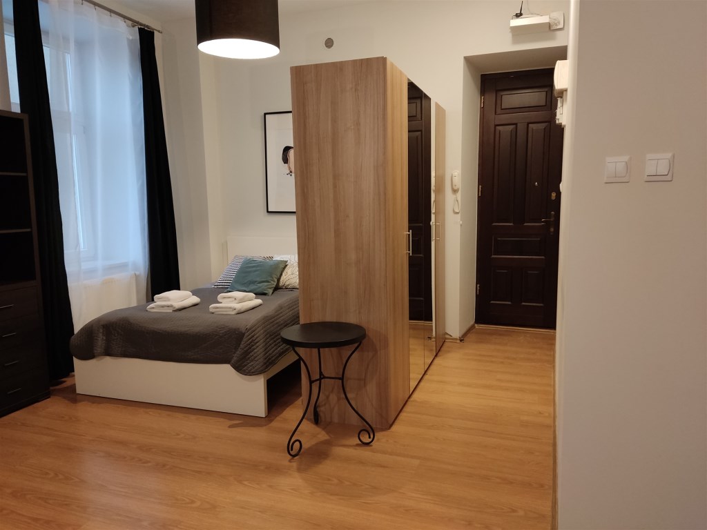 Oferujemy do wynajęcia komfortowe mieszkanie znajdujące się w kamienicy w ścisłym centrum miasta. Nieruchomość mieści się na drugim piętrze i jest to apartament typu studio (aneks kuchenny ze strefą dzienną plus oddzielona strefa sypialna).