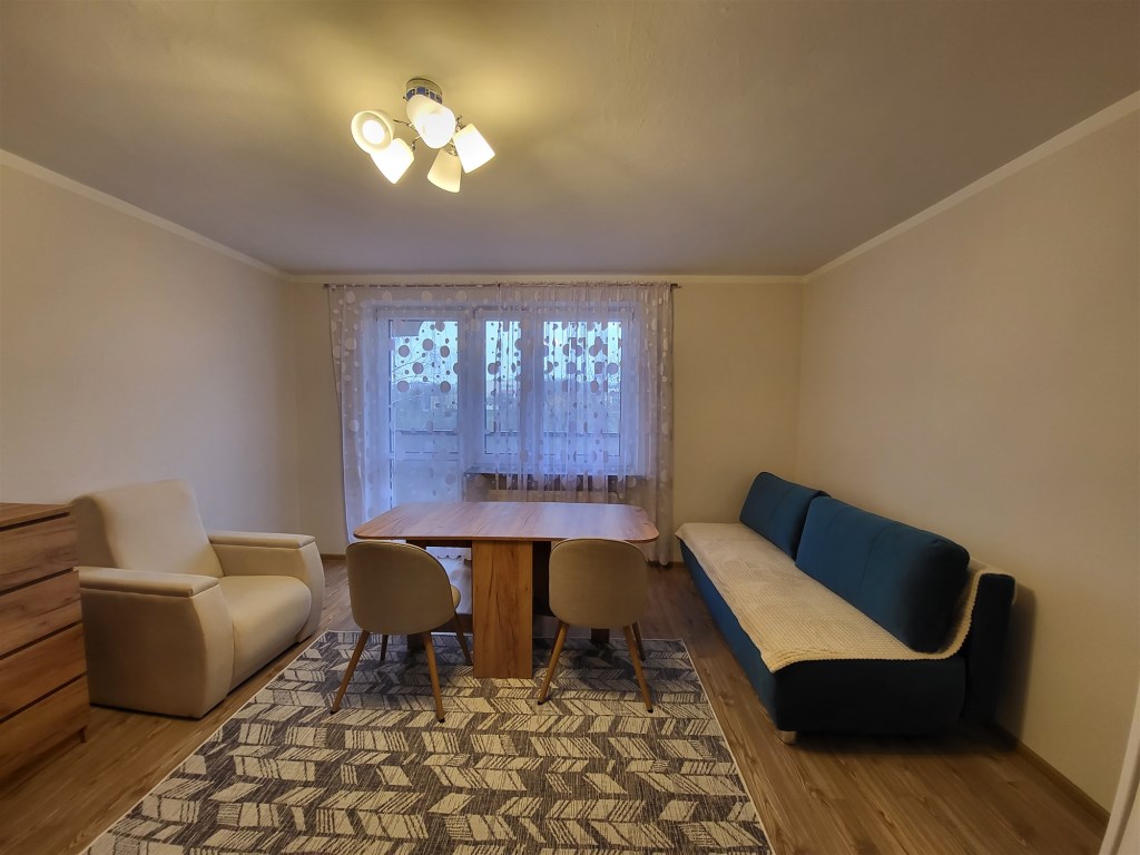 Oferujemy do wynajęcia mieszkanie znajdujące się na ul. Jana Sawy. Nieruchomość mieści się na pierwszym piętrze i składa się z trzech pokoi, kuchni, łazienki oraz wc. Mieszkanie wyposażone w nowe szafki kuchenne (nowy sprzęt AGD lodówka, kuchenka, pralka), nowe meble w pokojach. Ogrzewanie oraz podgrzanie wody (piec dwufunkcyjny). Miłe sąsiedztwo, widok z balkonu na zieleń, blisko przystanki mpk oraz sklepy (Leclerc, Biedronka, Rossmann).